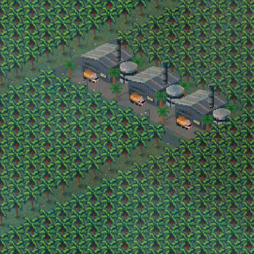 Decorate your landscape with realistic palm oil trees. They are the backbone of your industry, but be careful extensive planting comes with risks. Each plantation has a chance to trigger local flooding. It's small, but never zero!